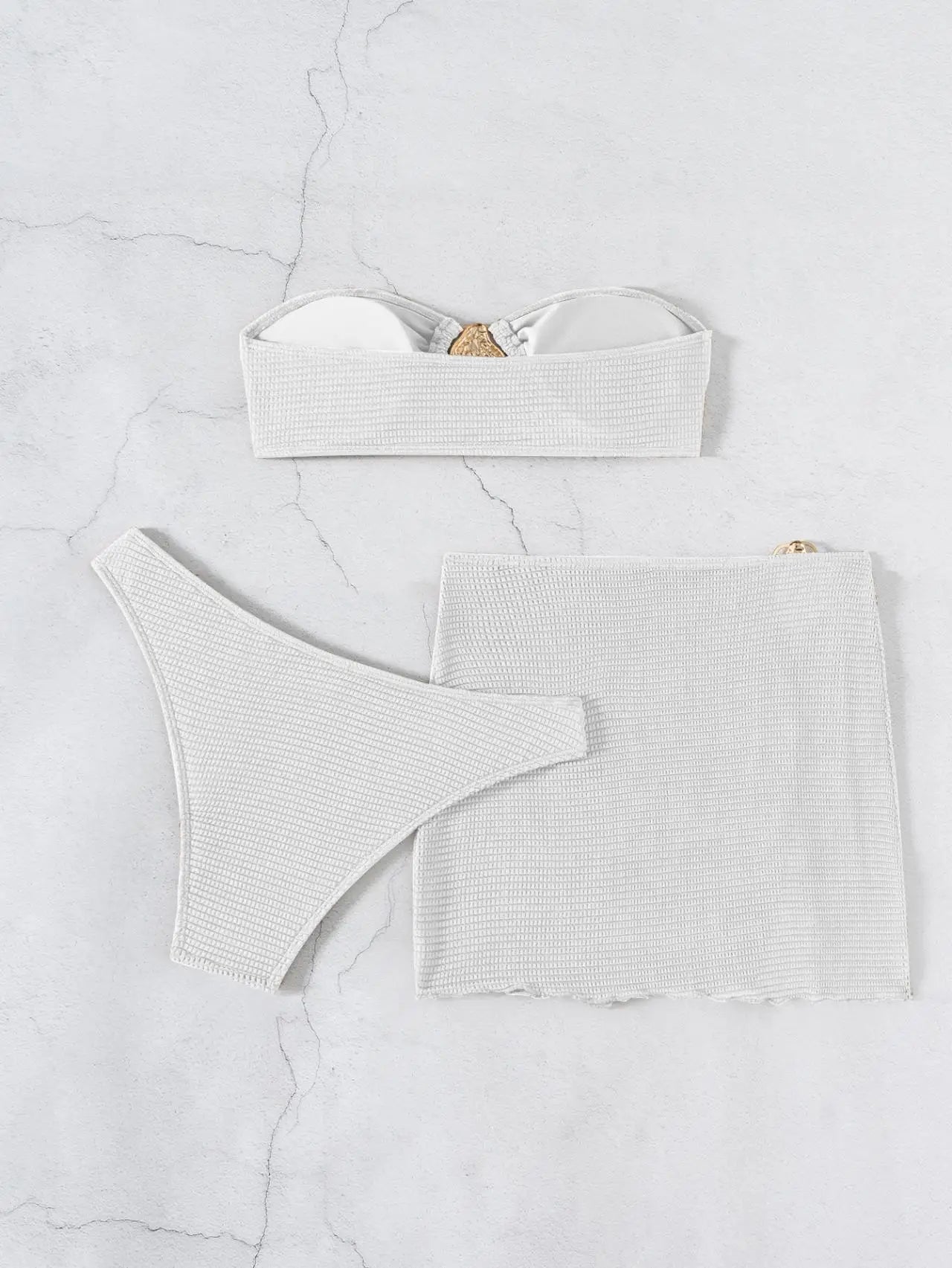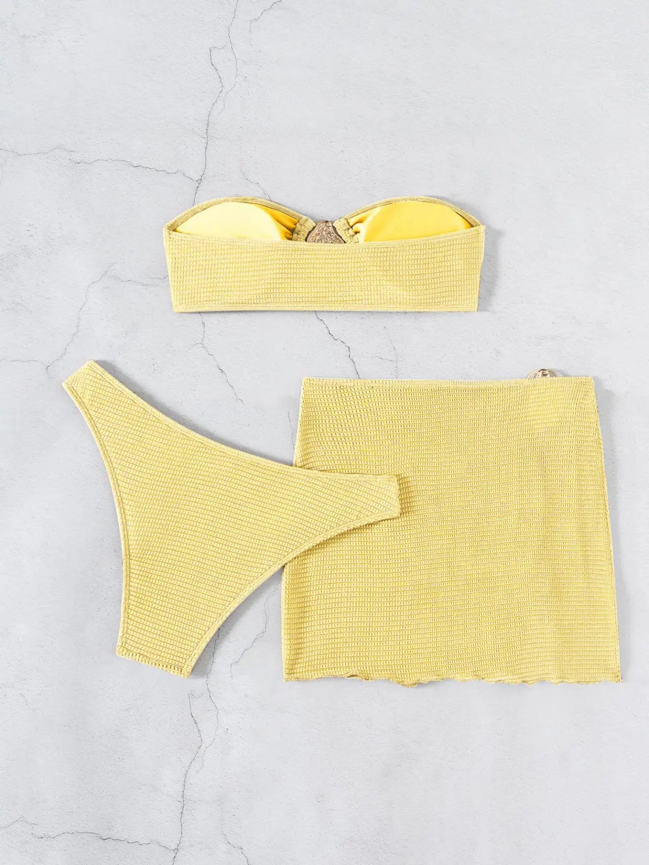 Minimalist and modern, the Sunset Bandeau Bikini Set brings sleek sophistication to your swimwear lineup. Designed with a flattering bandeau neckline and low-waist bottoms, this solid-color set is perfect for tanning and relaxing in style. Crafted from soft polyester with wire-free, padded support for comfort and confidence all day long.